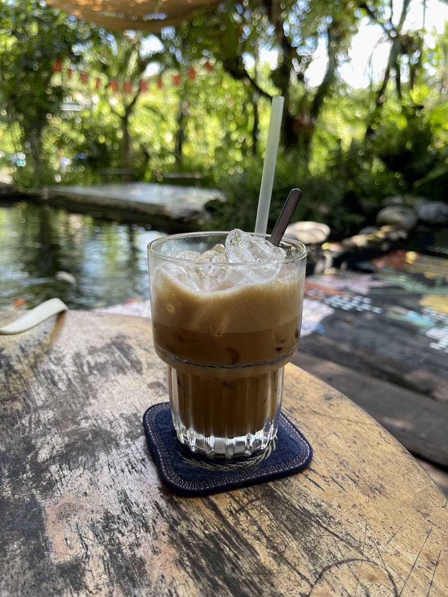 As you step into KOI FERN, you’ll be greeted by a lush ambiance featuring a picturesque Koi pond, enhancing the serene vibe of the café. The sound of gentle water cascading complements the tranquil setting, making it a perfect spot for a leisurely coffee date or a quiet moment of reflection. The café boasts outdoor seating with hammocks, ideal for lounging while savoring the refreshing beverages. For those who prefer a slightly cooler environment, the indoor area is equipped with air conditioning, ensuring a comfortable experience no matter the weather.